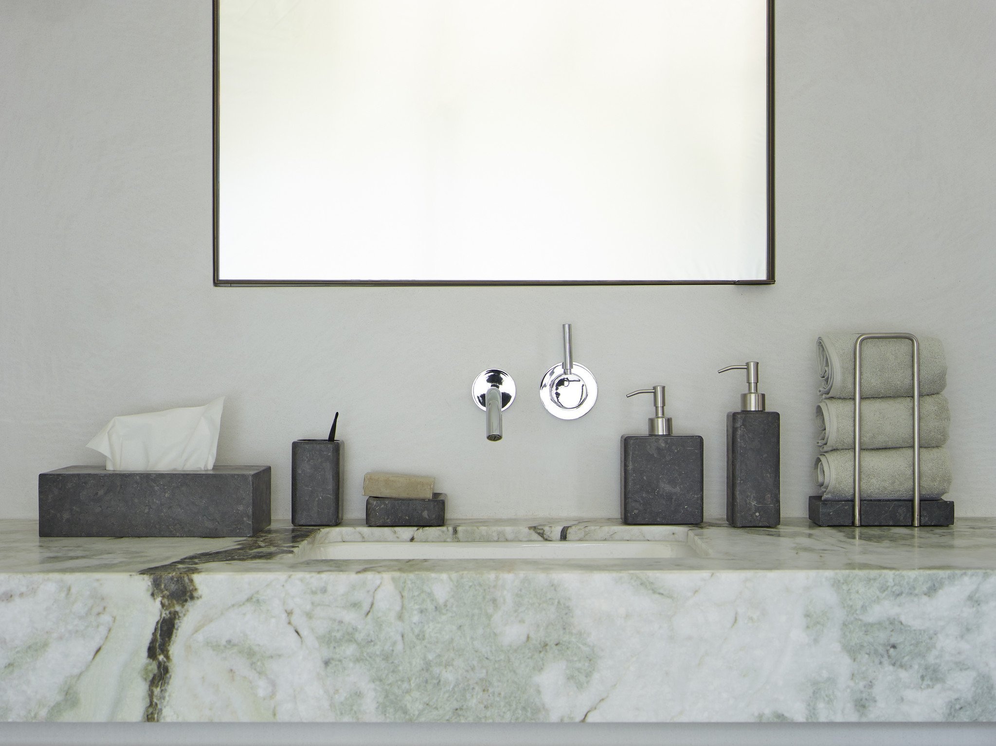 La série Hammam d'Aquanova est une vaste série d'accessoires de salle de bain en pierre naturelle. Élégante et intemporelle, cette série convient à presque tous les intérieurs. Ce bol peut être utilisé pour les pierres parfumées ou pour ranger de petits objets dans la salle de bain et les toilettes.