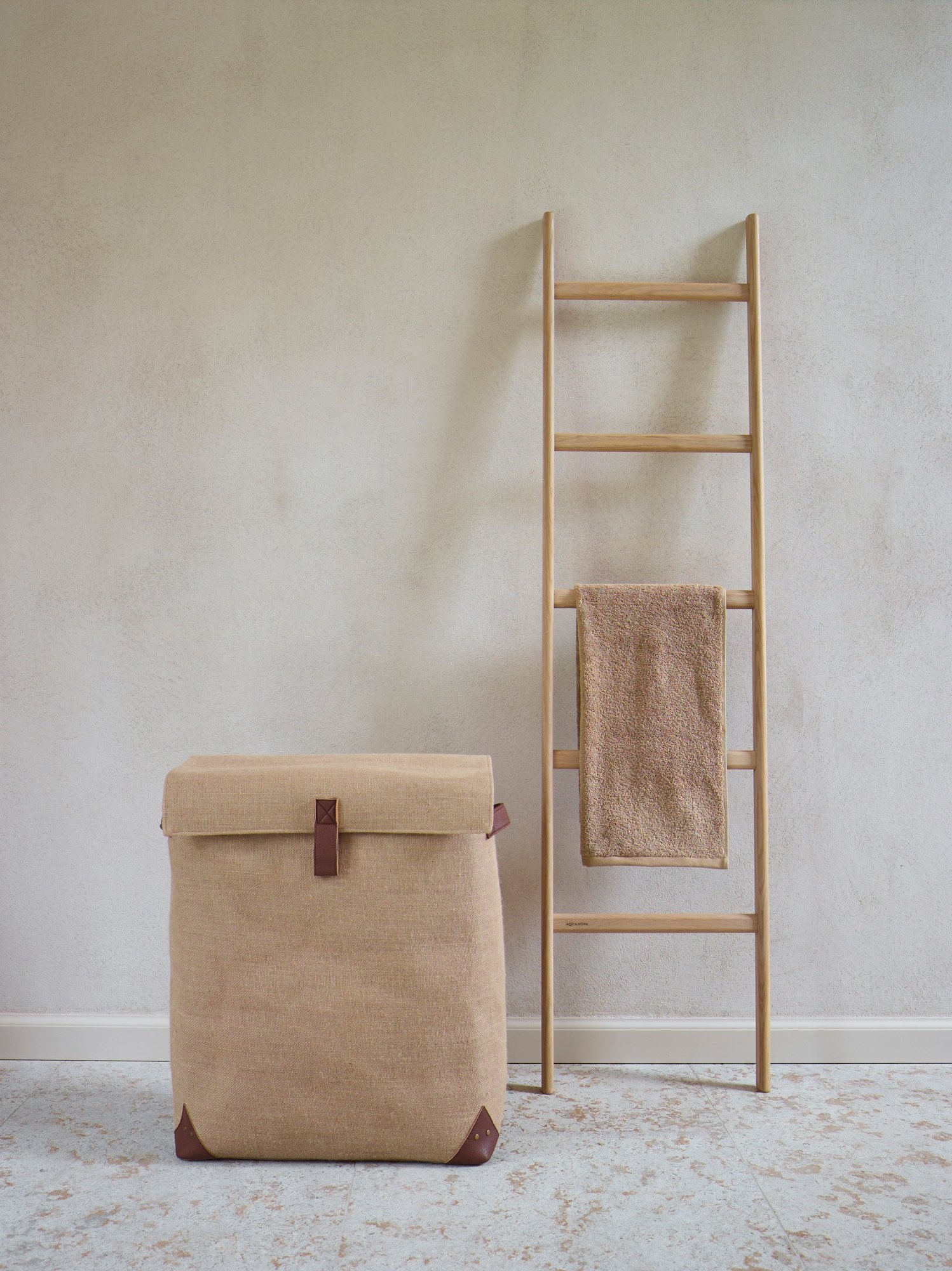 Échelle à serviettes en bois MINK (MINTLL-387) d'Aquanova. Cette échelle grande et haute faite à la main est idéale pour suspendre des serviettes, mais peut également être utilisée comme décoration. Fabriqué en bois de chêne. ...Informations additionnelles