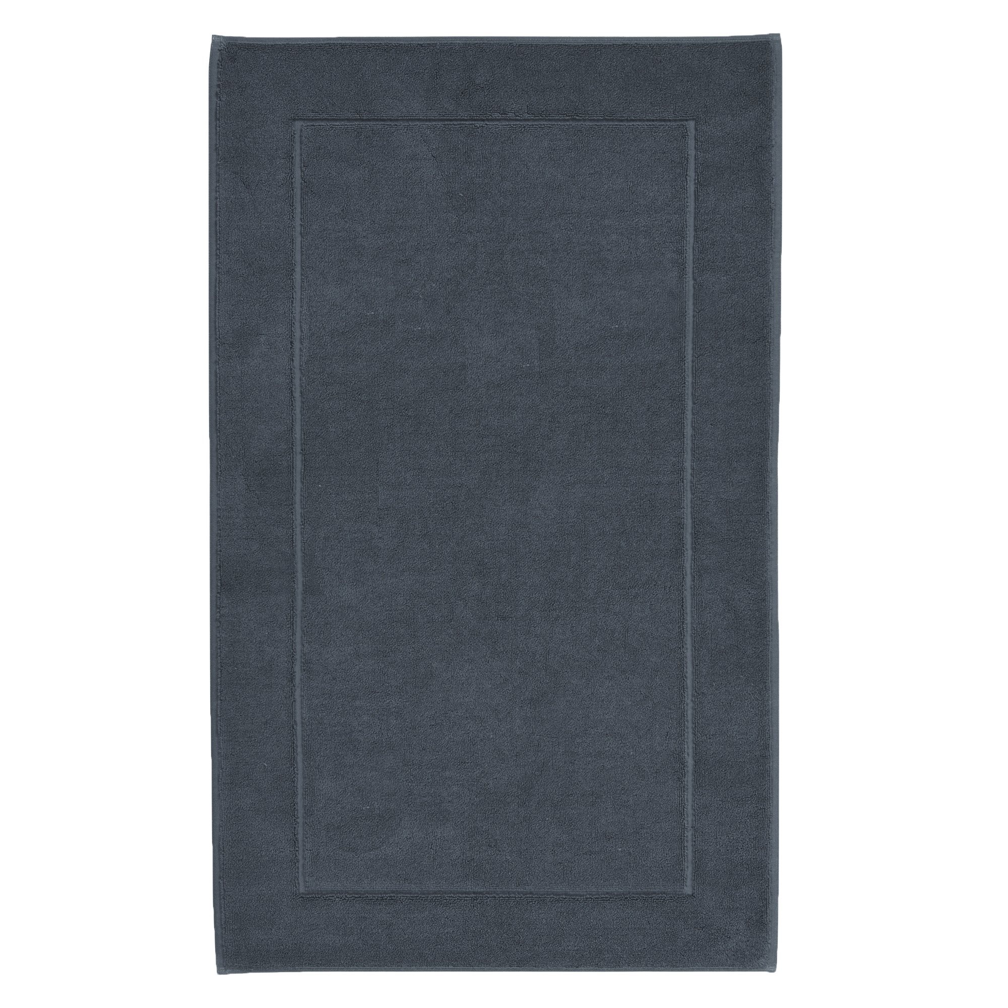 Tapis de bain London fin et souple d'Aquanova, coloris Steel-958 (bleu-gris foncé). 100 % coton égyptien peigné (1 200 g/m²). Légèrement antidérapant grâce à ses picots en silicone sur la face inférieure. Disponible en plusieurs tailles. ...Informations additionnelles