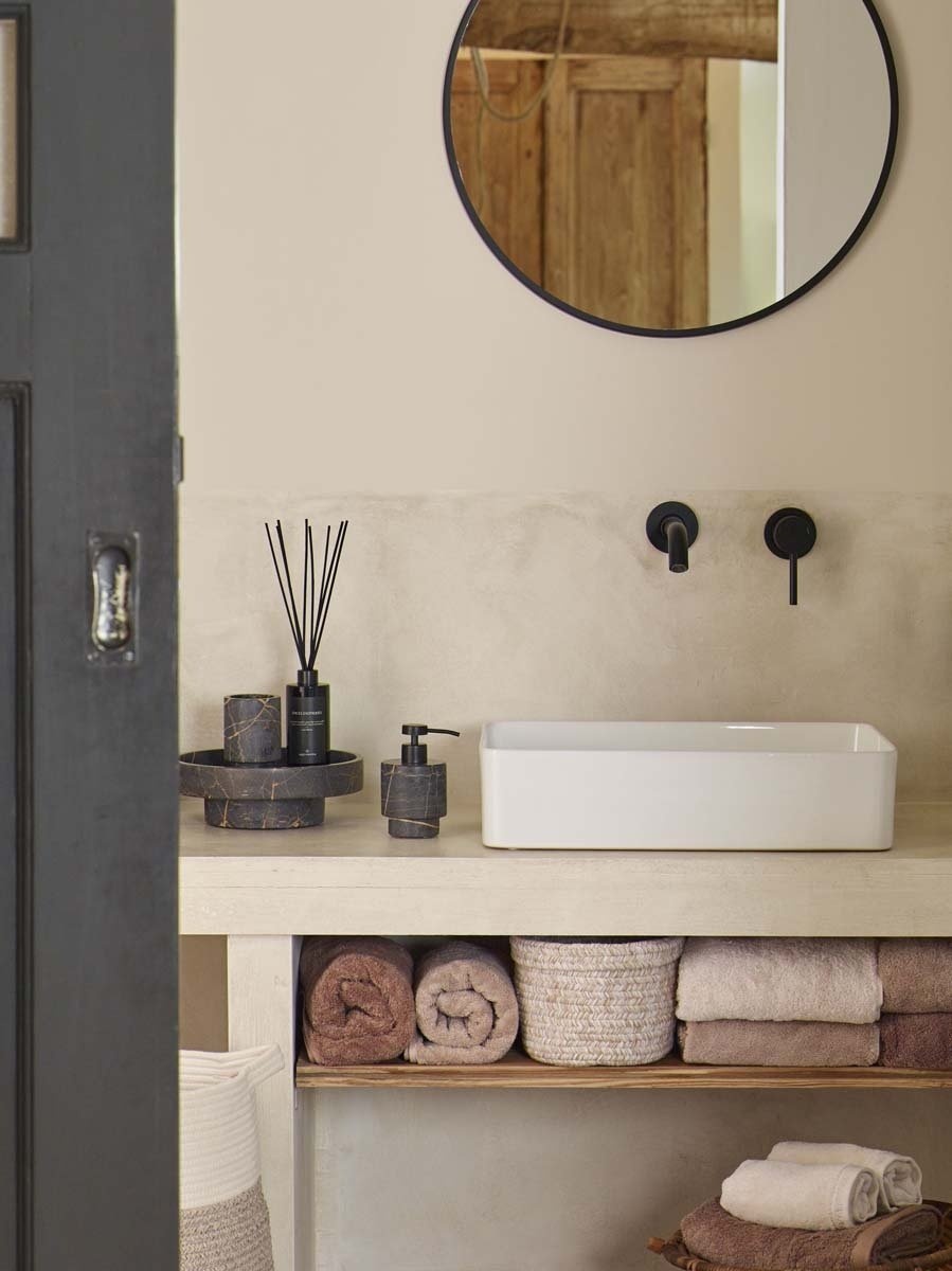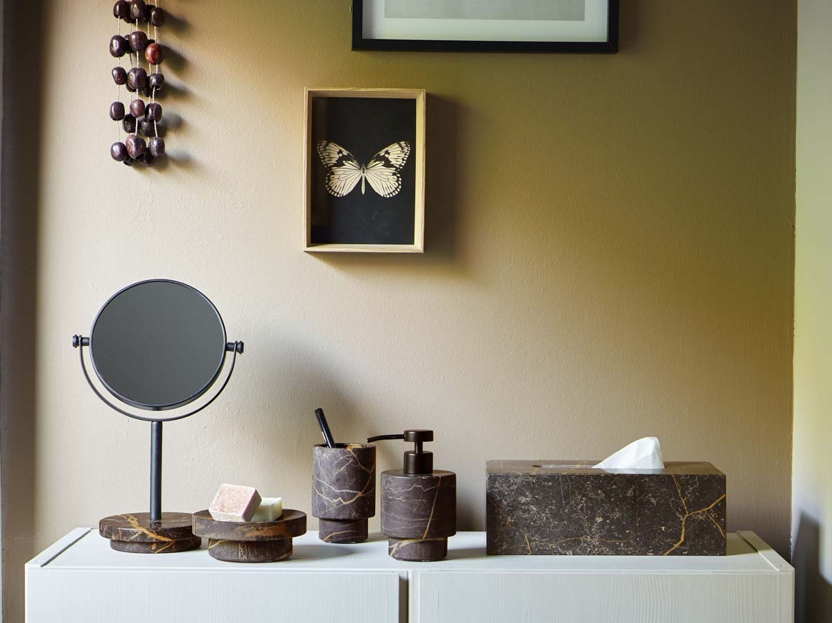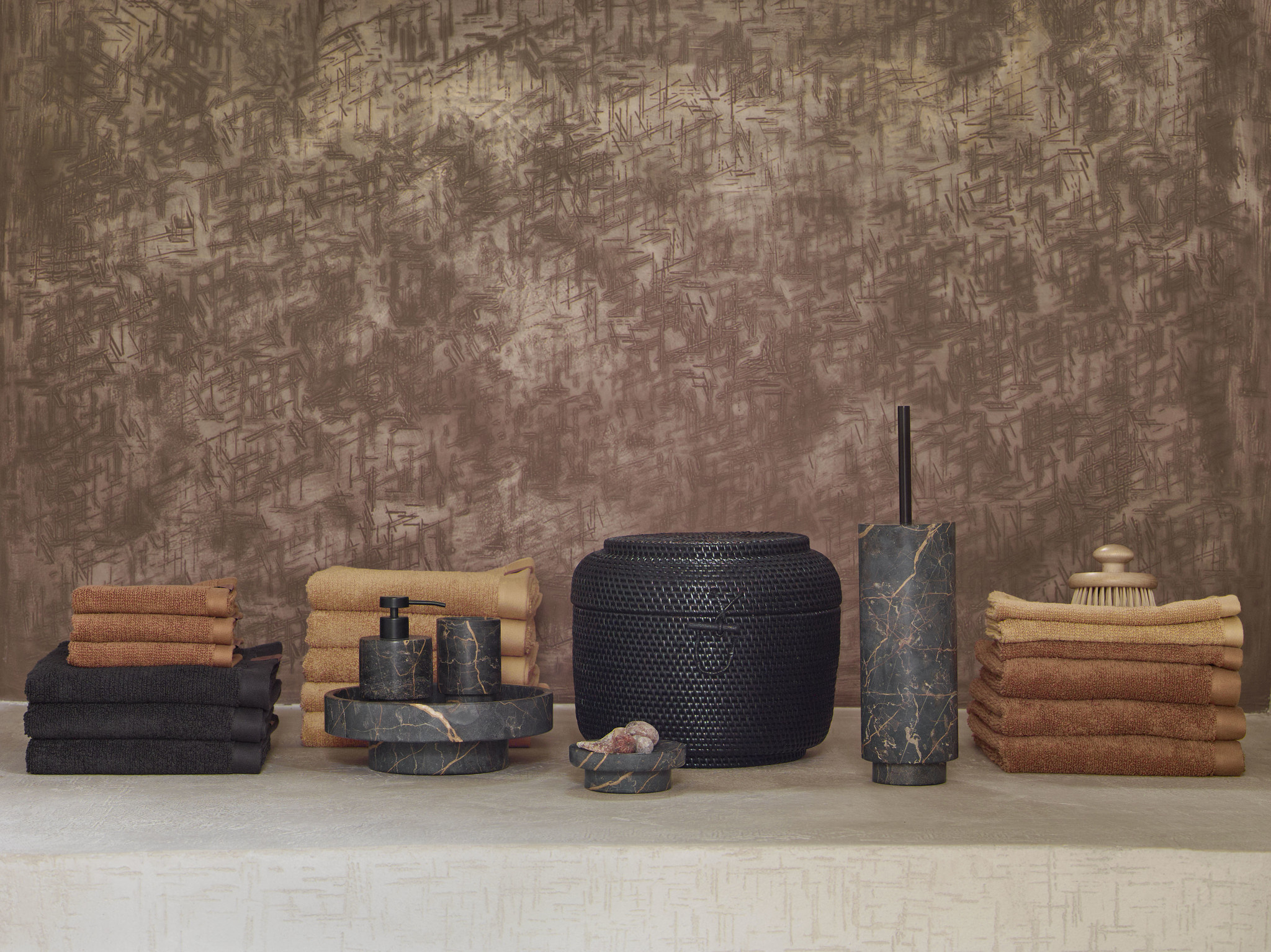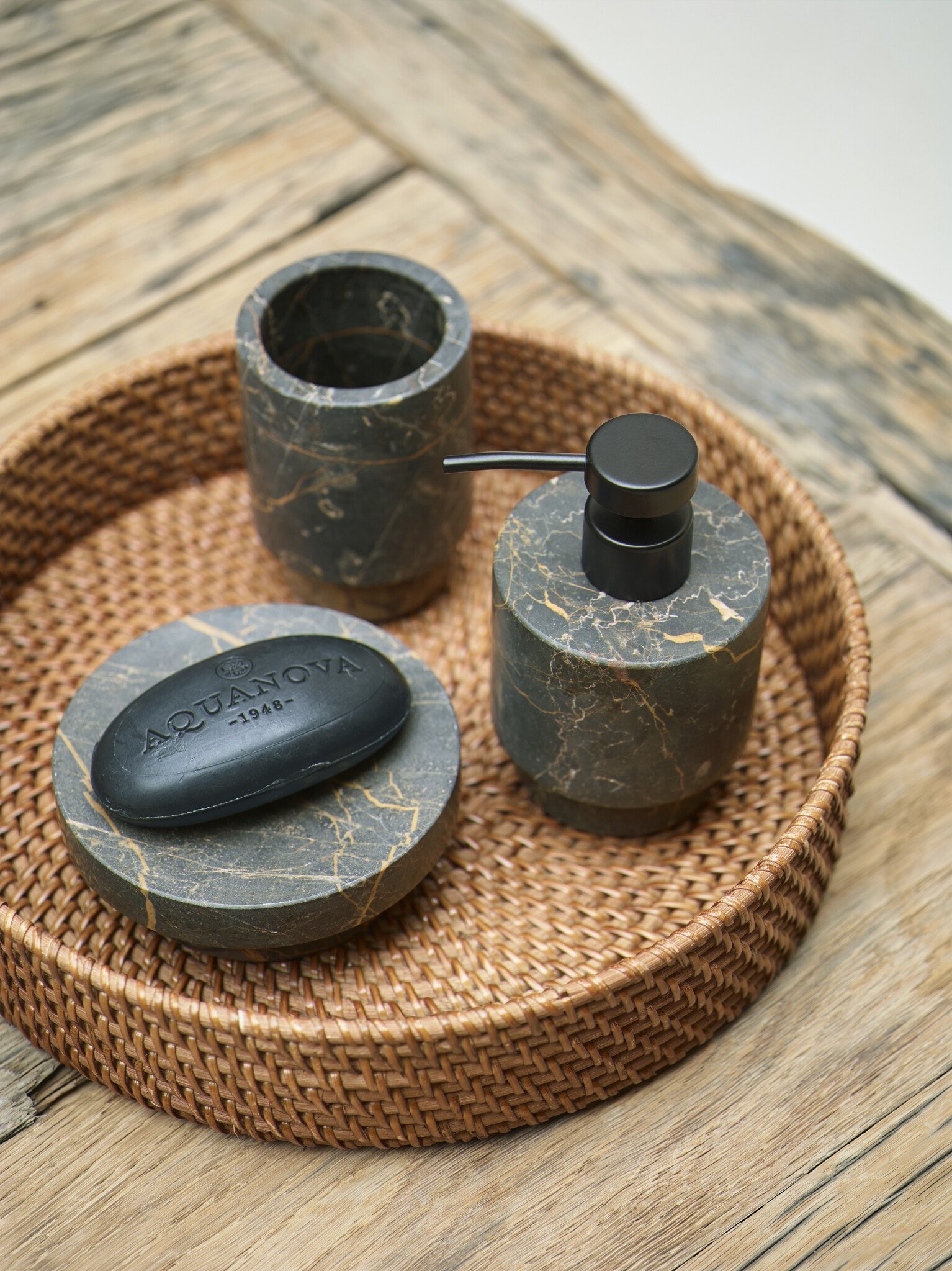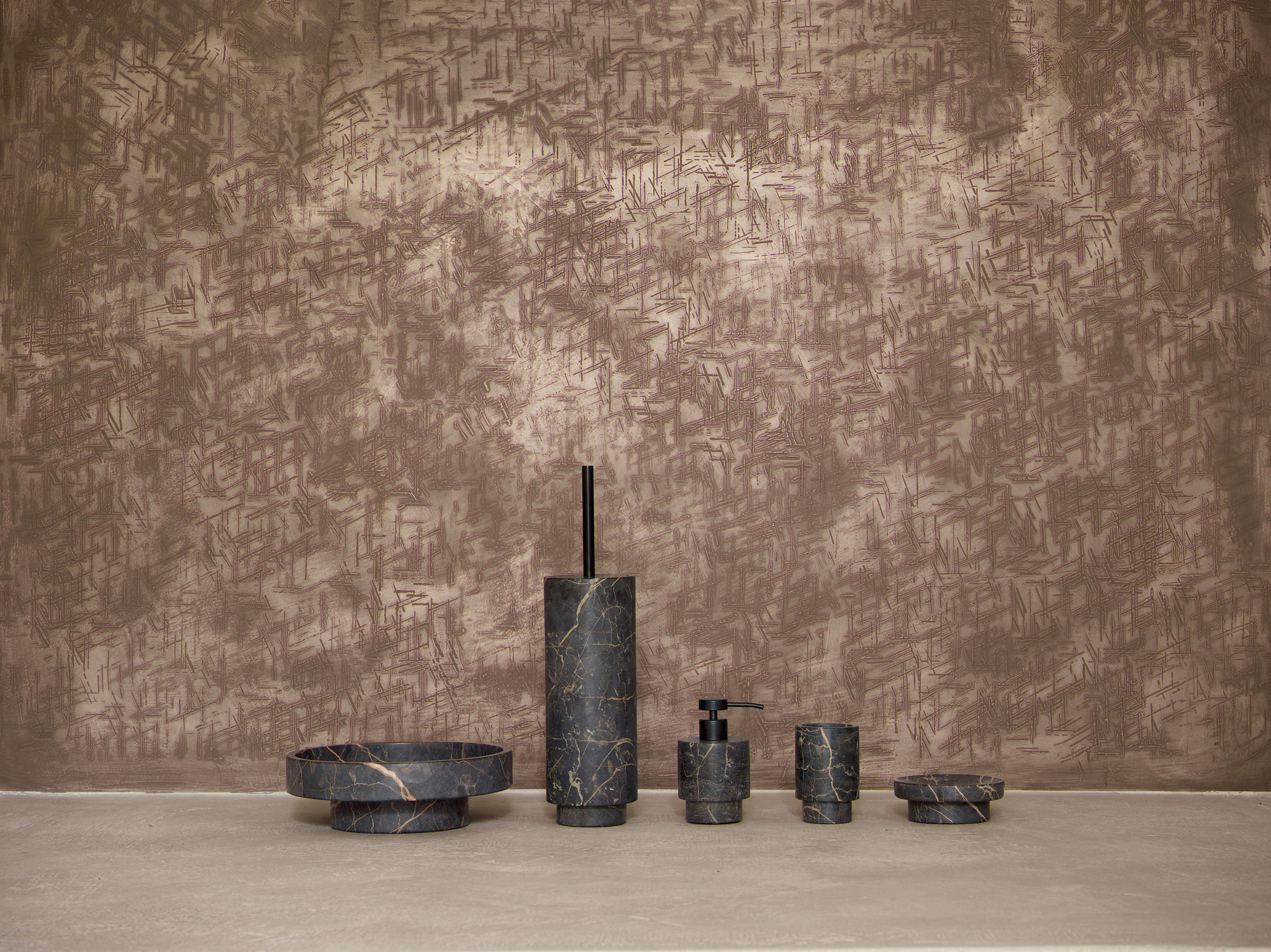 Porte-brosse à dents chic de Porto ; des accessoires de salle de bain qui sont juste un peu différents. La série Porto d'Aquanova se compose d'accessoires faits à la main en pierre naturelle italienne. La combinaison des caractéristiques noires, grises et brunes rend cette série unique !