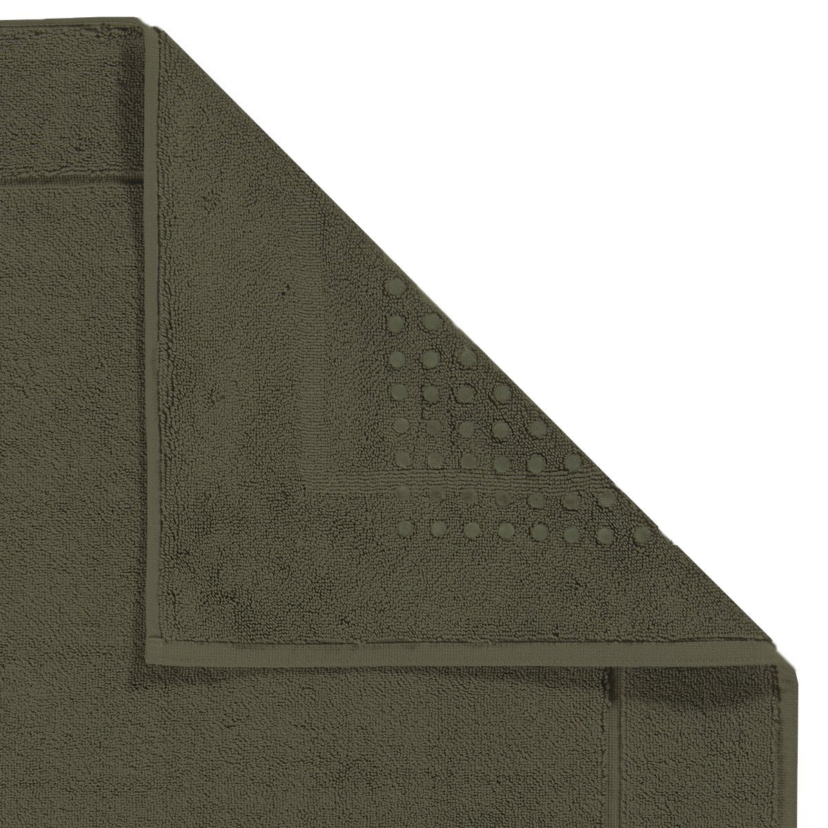 Dunne, soepele London badmat van Aquanova in kleur Taiga-302 (donkergroen). Gemaakt van 100% Egyptisch katoen (gekamd, 1200 gram/m²). Lichte antislip door siliconen nopjes aan de onderzijde. Diverse maten verkrijgbaar. ...Meer informatie